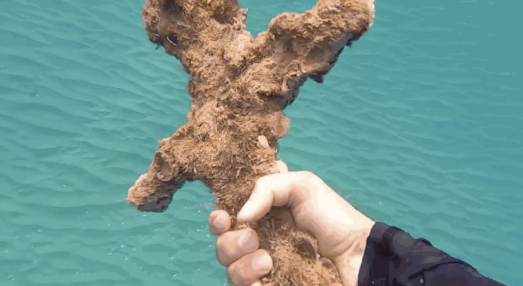 Um mergulhador chamado Shlomi Katzin estava mergulhando em uma enseada na costa de Haifa, localizada em Israel no Mar Mediterrâneo, quando se deparou com um objeto muito curioso e inusitado. Ele arrancou o objeto que parecia uma espada de 1,2 m de comprimento do fundo do mar e registrou a relíquia repleta de conchas com sua câmera GoPro.