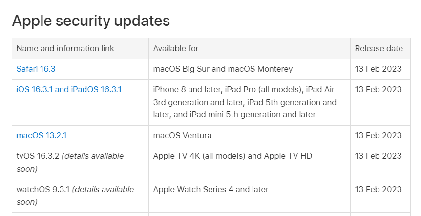 Segundo as informações divulgadas pela Apple, os modelos mais recentes do iPhone e do iPad, bem como o macOS Ventura, Safari, AppleTV e Apple Watch receberam a atualização nesta segunda-feira (13).