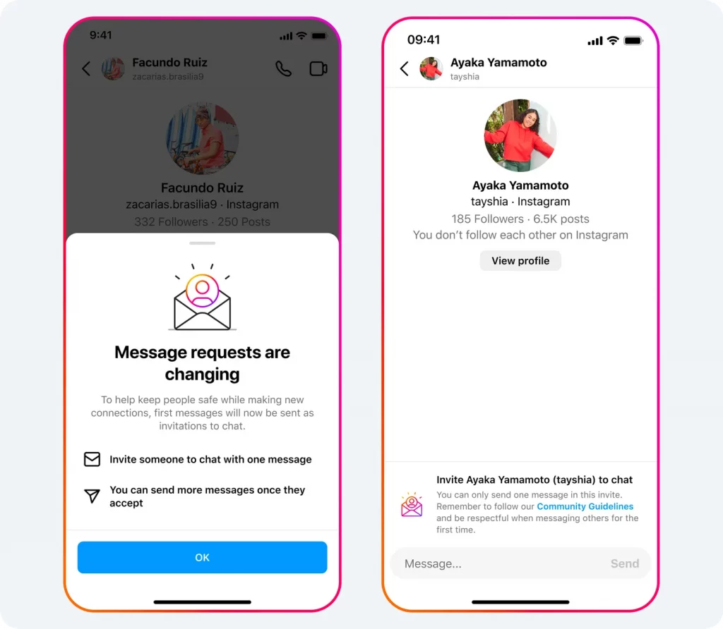 - Com a mudança, os usuários só podem enviar mais de uma mensagem após a aprovação da solicitação, ou seja, até que você aceite a solicitação de mensagem, as outras contas só poderão te enviar uma mensagem por vez;